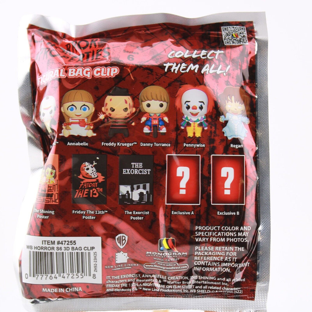 Warner Brothers Horror 3D Figural Foam Bag Clip Blind Keychain Pennywise Freddy+